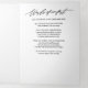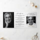 Modern black and white celebration of life trifold program providing a refined and heartfelt way to honor a loved one's memory with a sophisticated and timeless layout. This all-in-one funeral program features a bold, full-panel photo on the cover alongside elegant script and serif typography, creating a clean yet emotional tribute. The design includes space for a name and life dates, with interior panels dedicated to a structured order of service, obituary section, and a meaningful poem or words of comfort. The final panel is reserved for acknowledgments and reception details, allowing families to express gratitude with grace. With its monochrome palette, sleek script headings, and ample room for personalized content, this folded layout is ideal for families seeking a polished and respectful funeral program design that balances beauty with functionality.