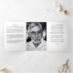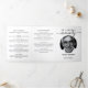 This professionally printed black and white funeral tri-fold brochure offers a refined and heartfelt tribute for memorial and celebration of life services. Designed with a timeless aesthetic, the layout features elegant serif and handwritten script fonts, spacious sections for a detailed obituary, acknowledgment messages, order of service, and a beloved poem. The front panel displays a circular photo area framed with the phrase “In Loving Memory,” adding a personal and respectful touch. Inside, the layout flows clearly, allowing room for personal stories, names, and messages, all presented in a way that honors the legacy of the departed. The clean black and white color palette ensures it suits any memorial style—religious or secular, traditional or modern. Ideal for families seeking a dignified and customizable printed funeral program, this tri-fold design serves not only as a service guide but also as a treasured keepsake for guests. This elegant format brings comfort, clarity, and lasting remembrance to a meaningful farewell.