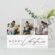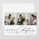 Modern Script 3 Photo Collage Merry Christmas Holiday Card