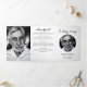Elegant celebration of life tri-fold memorial programs offer a refined and heartfelt way to honor the memory of a loved one with a professionally designed layout that includes space for a photo, obituary, order of service, words of comfort, and acknowledgments. Featuring a timeless black and white color scheme with modern serif and script typography, this tasteful funeral pamphlet design combines sophistication with simplicity, making it ideal for traditional or contemporary memorial services. The tri-fold layout provides a well-organized flow of information, allowing family and friends to reflect on a life well lived while offering a beautiful printed keepsake. With designated sections for personalized tributes, cherished memories, and a thoughtful poem, this template creates a meaningful presentation that captures the essence of your loved one’s life journey. Ideal for funeral homes or families planning a memorial or celebration of life service, this versatile funeral program design brings dignity and clarity to a deeply emotional occasion.
