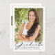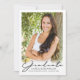 Announce your graduate's achievement with this photo announcement card featuring a modern handwritten script typography GRADUATE title design accented with a faux metallic gold foil graduation cap and 5 pictures (1 on the front and 4 on the back). The back offers a place to include additional information about your graduate's achievements, activities and future plans as desired. ASSISTANCE: For help with design modification or personalization, color change, transferring the design to another product or if you would like coordinating items, contact the designer BEFORE ORDERING via the Zazzle Chat MESSAGE tab or email makeitaboutyoustore@gmail.com.