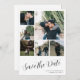 Elegant chic simple minimalist hand lettered calligraphy script wedding six (6) engagement couple photo collage personalized save the date card (printable) template. Easy to customize on both sides with your text and pictures.