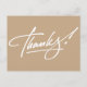 Modern handwritten script Thank You postcards in Almond Brown. Perfect for Weddings, Birthdays, Christmas, Showers or any other occasion. Almond Brown color 'Thank You' postcards, if required, choose any other color or add your own printed text, address or company name from the "Customize It" tab.