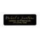 Modern Script Black and Gold Wedding Return Address Label featuring bride and groom's name in modern calligraphy font and address in modern sans serif font style.