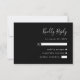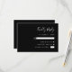 This simple modern wedding RSVP enclosure card features white text on a black background. The title appears in stylish handwriting calligraphy. Customize the remaining text in sans serif font. The reverse side is solid black.