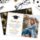 Modern Script Black Gold Balloon Graduation Photo Thank You Card