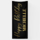 Modern and elegant black and gold "Happy birthday" party banner customized with the name of the guest of honor.