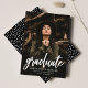 Simple graduation announcement featuring the graduate's photo with "graduate" in a trendy white script font. Personalize the front of the photo graduation announcement by adding the graduate's name, school name, and graduation year. The announcement reverses to display a pattern of white sprinkles with a black background or color of your choice.