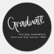Modern script black and white graduation stickers. These round stickers feature a modern trendy script with a black and white theme. Customize the text with the graduates name and high school. Visit my black and white graduation collection to view all coordinating items.