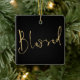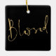 Modern Script Blessed Christmas Gold Black Ceramic Ornament