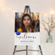 Modern Script Blue Cap Photo Graduation Welcome Foam Board