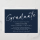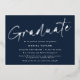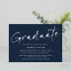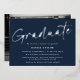 This is a minimalist and modern graduation announcement. It uses a simple and stylish handwritten script design in classic dark blue and white, with "Graduate" in real silver foil and a photo on the back. This design applies a black and white filter to your photo, to remove or change this press the blue button to edit your design, then select the photo and edit the filter settings accordingly. Please contact the designer for any queries about this design.