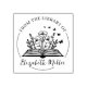 This "From the Library Of" rubber stamp features a book, flowers and a custom name.