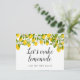 This modern script fun lemons watercolour bridal shower change of date card can be personalised with your postponement information. The reverse has additional details, including your website, with your return address and space for your recipient's address. A perfect way to keep your guests informed. Designed by Thisisnotme©