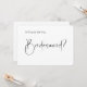 This minimalistic script Bridesmaid Proposal card is the perfect way to celebrate your bridal shower in style. Features elegant and modern typography. You can personalize this design by clicking on "Personalize this template" or if you wish to change the font, background colors or arrange the design elements in a different way you can click on "Edit using Design Tool".