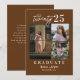 This brown colored modern minimal photo collage graduation announcement features both script and sans serif typography. This pairing of flowing script and modern sans serif creates a stylish balance, with the script adding sophistication and the sans serif ensuring clarity and readability. Upload your favorite photos.