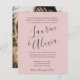 Modern Simple Script Calligraphy Photo Wedding Invitation - features the Bride and Groom's names, big and bold in modern, script typography. The back of the invitation features a beautiful photo of the bride and groom. Invitation will be part of a wedding suite and will be available in various colors. You can easily change the background color to match your wedding theme. Shown in blush pink. A simple, classic invitation with pretty calligraphy. * Please note that this is a budget option. The photo will definitely be better quality on our flat invitation. If you prefer a thicker, better quality paper stock, please choose our flat invitation. We recommend NOT choosing the satin option for the budget invitation.