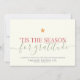 Modern business holiday card with elegant script calligraphy reading 'TIS THE SEASON FOR GRATITUDE in pastel red and green Christmas colors. Below is space for your custom message as well as additional space on the back over your corporate logo. Perfect simple corporate holiday card with a contemporary, trendy typography design under a watercolor orange star.