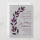 Modern Script Cassis Purple Leaves on Gray Wedding Invitation