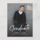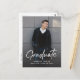 Modern script graduation announcement and invitation postcard with photos, more photo and grad party information on the back, simple and casual.