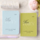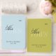 Ditch the traditional neutrals and embrace a bold, contemporary color story with this vibrant wedding vow book set. Featuring a striking pairing of sky blue and chartreuse green, these notebooks are designed for the couple who wants their "I Dos" to be as unique as their love story. The design utilizes a sophisticated layered typography technique: a bold, minimalist "VOWS" watermark creates a modern foundation, topped with an elegant shimmering foil script. These slim, high-quality journals are the perfect size to hold during your ceremony and will serve as a cherished, colorful keepsake for years to come.