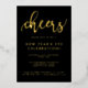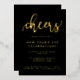 A simple but striking design to invite friends and family to ring in the New Year. This design features the word "Cheers" in gold foil hand lettered style script font against a chic black background. Personalize with your party details in gold foil.