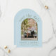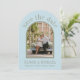 Modern Script Citrus Blue Wedding Arch Photo Save The Date