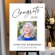 This elegant yet modern retirement sign features a square photo, calligraphy script greeting, and modern typography. The script greeting says "Congrats". This design would be a great choice for many people in different careers. The script and text colors are easily customizable as well.