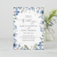 Modern Script Dusty Blue Flowers Wedding Invitation