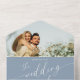 Simple Modern Script Dusty Blue Photo Wedding All in One Invitation