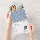 Modern Script Dusty Blue Photo QR Code Wedding All In One Invitation