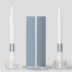 These elegant modern wedding unity candles feature white handwriting script and copperplate text on a dusty blue background. Add the names of the bride and groom and the wedding date on the center pillar candle and the bride's and groom's initials on the left and right tapers.