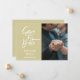 Modern white script, Wedding Save the Date Photo Card. Features, chic dusty yellow color backgrounds and single photo template on front.