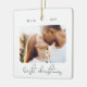 Modern Script Elegant Engagement Wedding Photo Ceramic Ornament