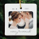 Modern Script Elegant Merry Married Wedding Photo Ceramic Ornament
