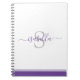 Simple modern monogrammed script personalized notebook for your journaling. The elegant purple stylish script matches the line design in color but offsets it in style, creating a fun twist to the minimalist look.