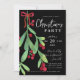 Modern Script Floral Mistletoe Xmas Holiday Black Invitation