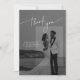 This full photo wedding thank you card features a modern script font paired with a transparent overlay, allowing your favorite wedding picture to shine through. Personalized with names and wedding date, it’s a stylish and heartfelt way to show gratitude to family and friends. The combination of elegant calligraphy and a contemporary layout creates a timeless keepsake.