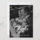 The typography features a striking, large-scale white calligraphy script for the words "Thank you!" in a flowing, handwritten style that pops vividly against your chosen photograph. Below the main message, you can easily personalize the card with the names of the couple and your wedding date in a clean, sophisticated sans-serif font. This minimalist and professional aesthetic is a timeless way to share your joy with friends and family.