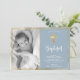Modern Script Gold Cross Blue Baptism Invitation