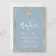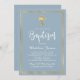 Modern Script Gold Cross Dusty Blue Boy Baptism Invitation