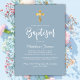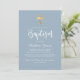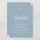 Modern Script Gold Cross Dusty Blue Boy Baptism Invitation