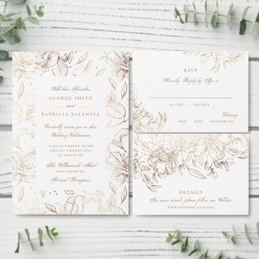 Gold Foil Flowers Hand Drawn Elegant Designed by Phrosné Barwood