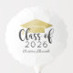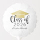 A festive graduation balloon featuring a modern script Class of headline with a gold graduation cap accent and the graduate's name in elegant calligraphy. The class year and name are fully customizable, making it a polished addition to any graduation party, bouquet, or celebration display. Available in multiple sizes to fit your decor.