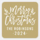 Modern Script Gold Merry Christmas Custom Square Sticker
