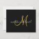 Modern Script Gold Monogram Black Note Card