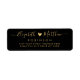 Modern, Elegant Black and Gold Hand Lettered Wedding Return Address Labels. Featuring a beautiful hand-written script bride and groom's first name template with swash-tail font in black, little heart shape between the names on white color background. Easy to personalize them with your names and return address info.