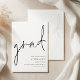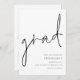 Modern Script Graduation Grad Save the Date. Available digitally and printed. This simple monochrome design has informal set handwriting style script for the main header, grad, and easy to personalise typography to the bottom right hand side with your details. Can be changed to any Colors via the edit further option.