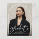 Celebrate your graduate in style with the Modern Script Graduate Photo Arch Graduation Party Postcard. Featuring an elegant script font and a unique arch photo layout, this postcard is perfect for inviting family and friends to the celebration. A sophisticated and memorable way to mark this special milestone.