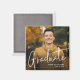 A Modern Script Graduate Simple Photo Graduation Announcement magnet with handwritten font full bleed portrait photo on the front with name and graduation details. The back is magnetic. Click the edit button to customize this design.